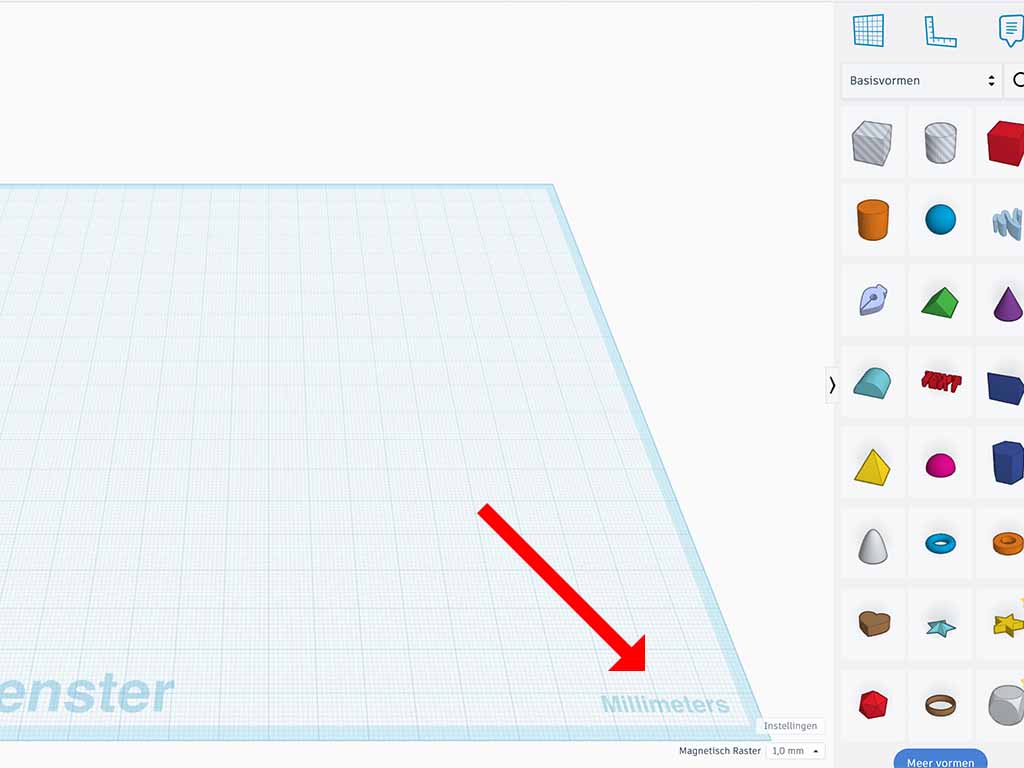 - I will use millimeters in this design. If the bottom right corner of your workplane does not show "millimeters" you can change this in the settings.