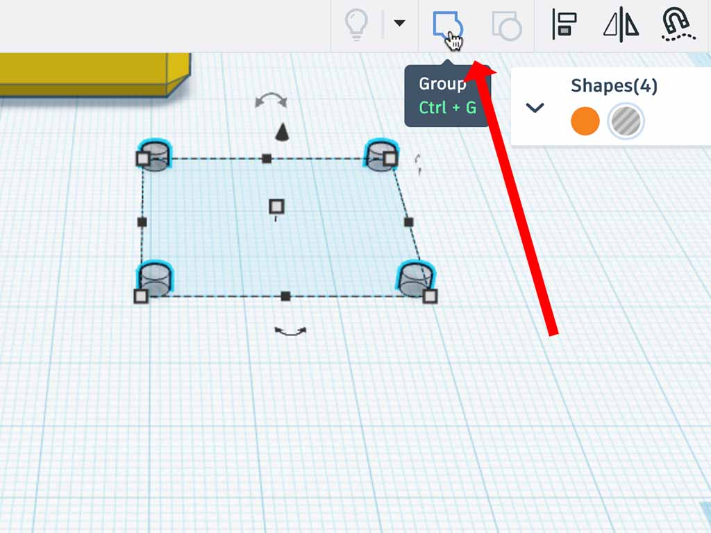 - Select all four holes and group them together using the "Group" button.