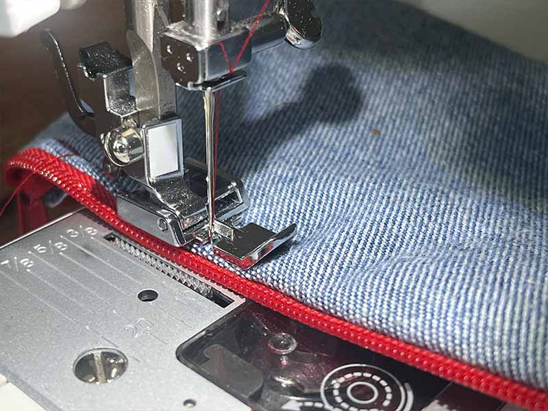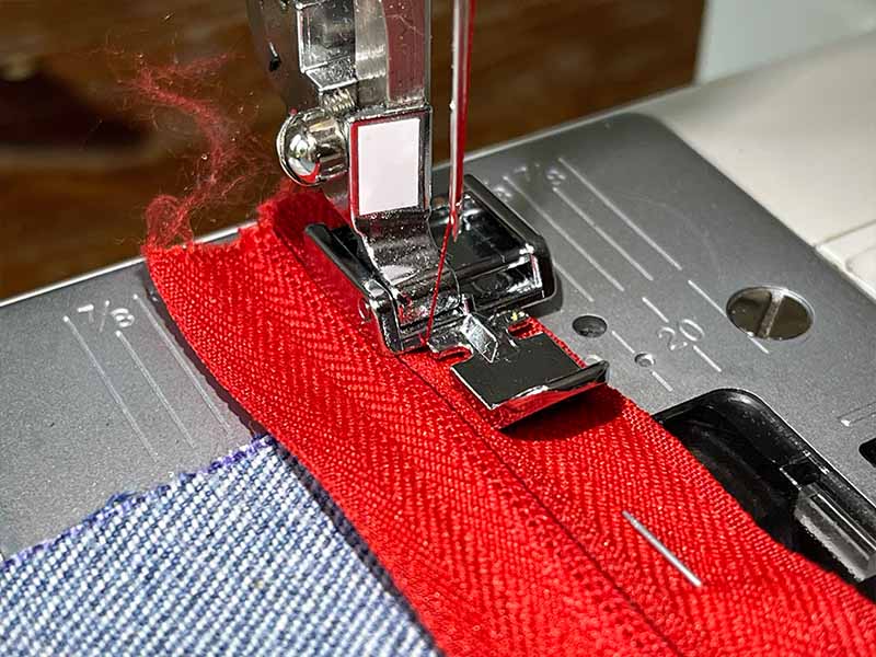- Als je naaimachine een ritsvoet heeft, gebruik die dan. Zo niet, dan kun je een gewone voet gebruiken.