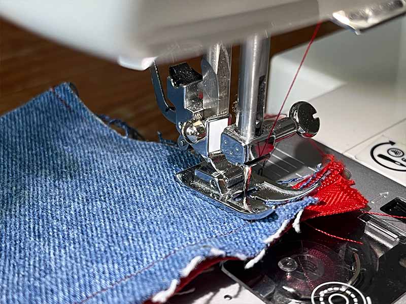- Naai de rits vast aan de stof, zorg ervoor dat je zo dicht mogelijk bij de ritstanden naait.