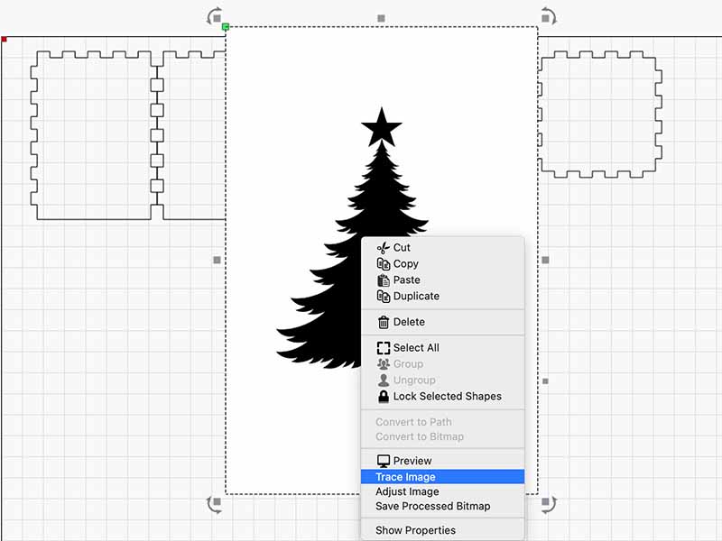• Gebruik de "overtrek" functie en schaal de afbeelding zodat hij in een paneel past. Zorg dat je onderaan ruimte overhoudt voor de onderkant van het LED-lichtje.