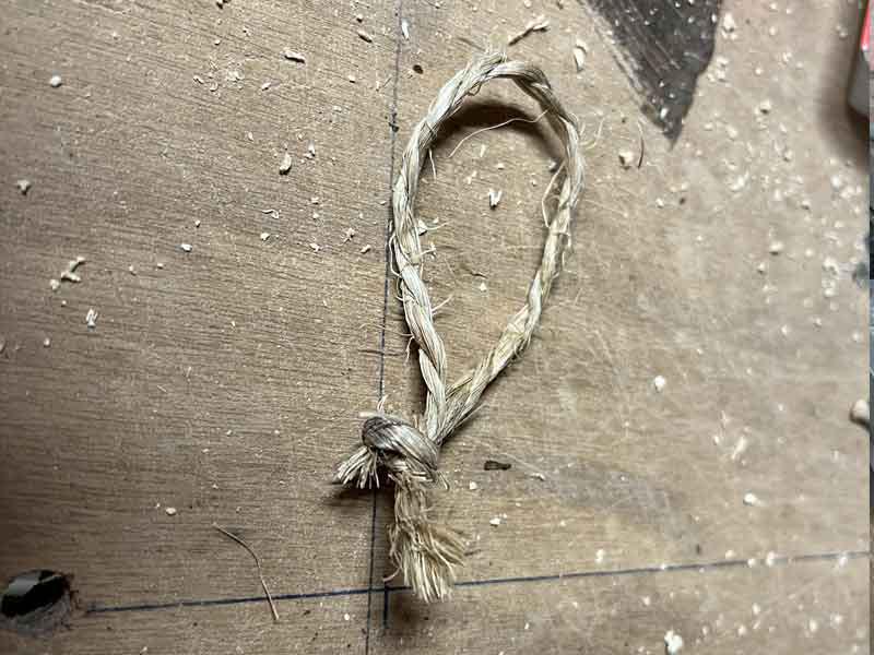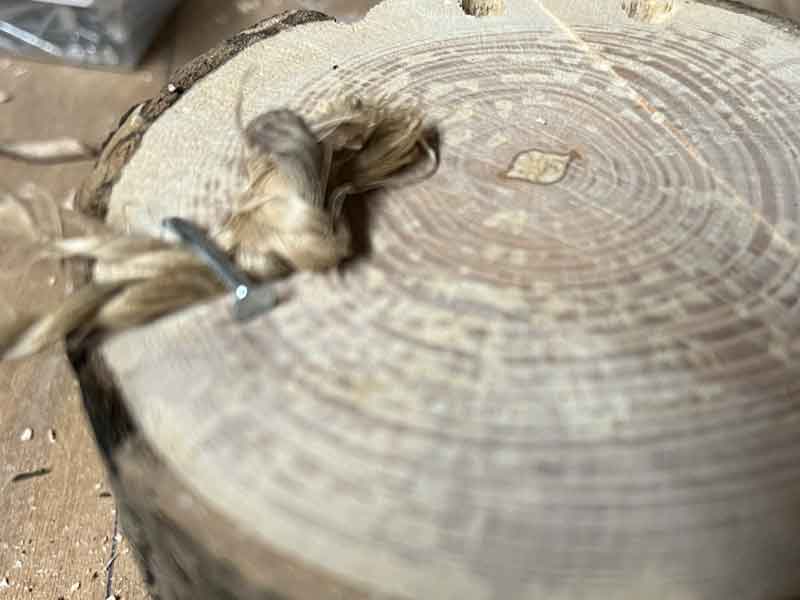 • Plaats het touw naast de spijker en sla de spijker over het touw heen.