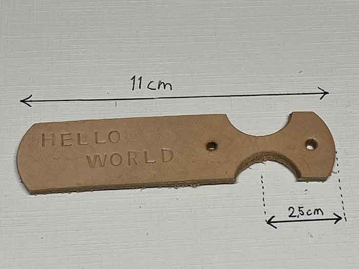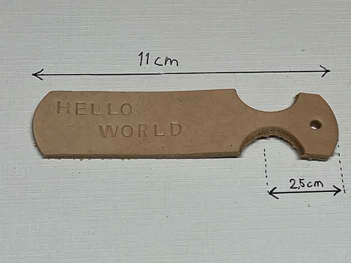 Een leren sleutelhanger met je eigen tekst erop.