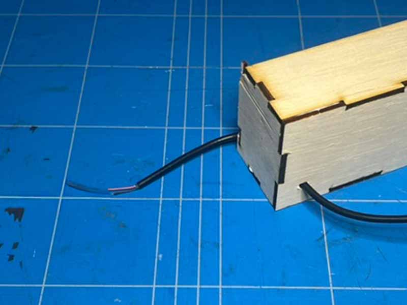 - Doe een beetje lijm op de soldeerverbindingen en op de plek waar de kabel het kistje binnenkomt.