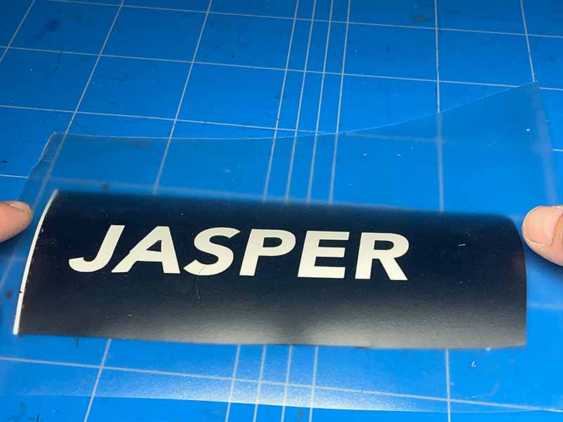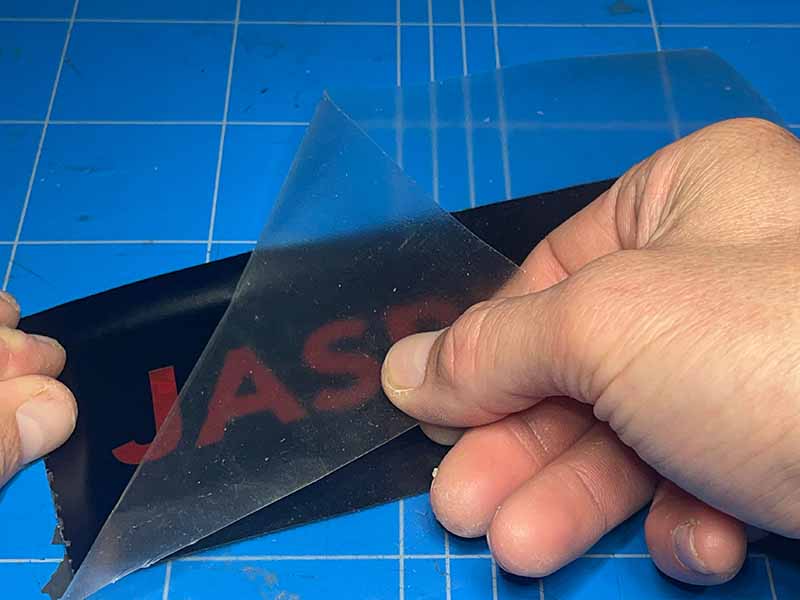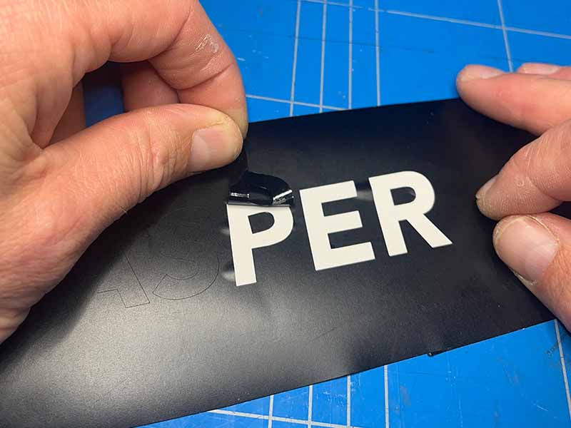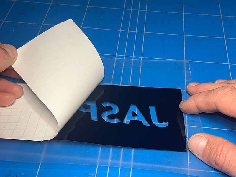 - Verwijder het vinyl waar het licht doorheen moet schijnen. Je kunt de letters weghalen, of juist het vinyl rondom de letters verwijderen.