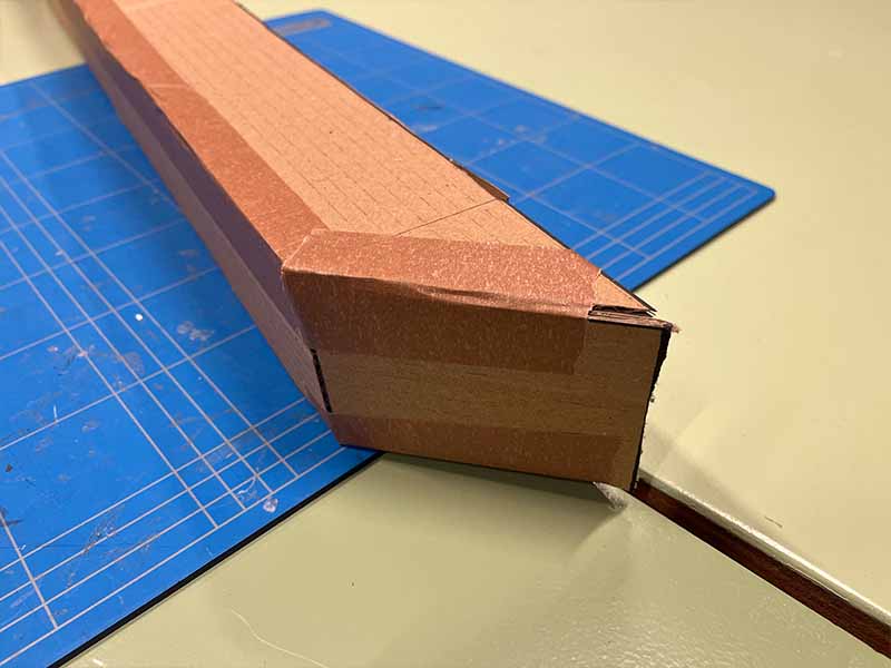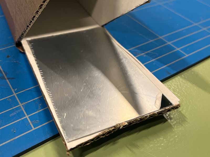 - Gebruik wat meer plakband om het karton met de spiegels aan het schuine stuk karton te bevestigen.