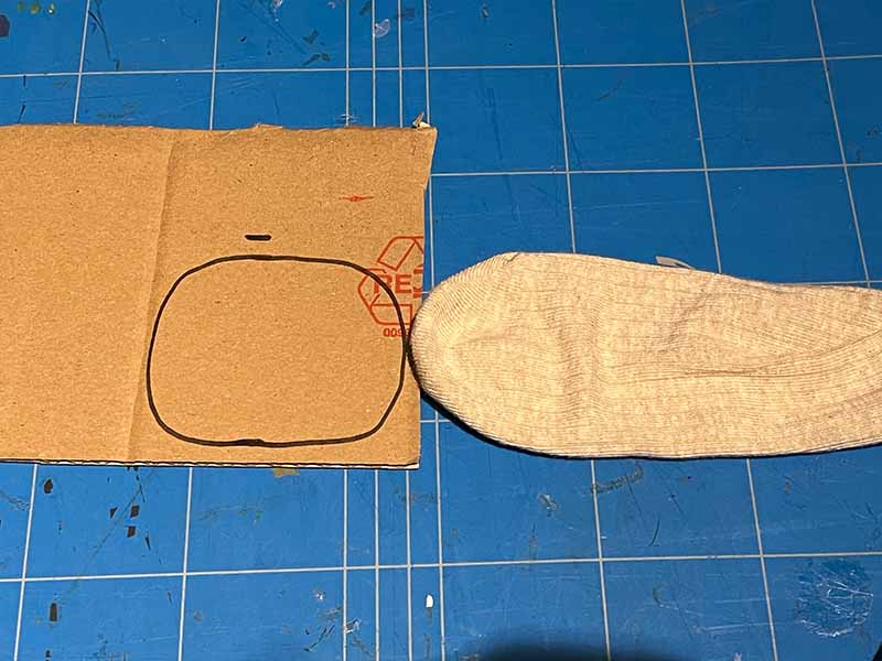 - Teken een mondplaat op het karton. Kijk naar de breedte van de sok om te zien hoe groot het moet zijn.