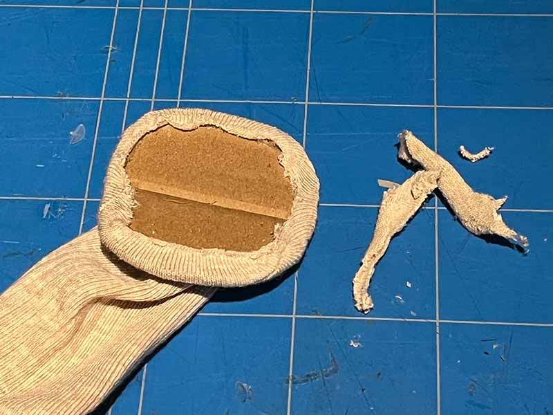- Knip de voorkant van de sok open.