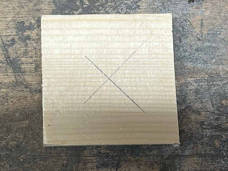 - Teken lijnen van hoek naar hoek om het midden van het blok te vinden
