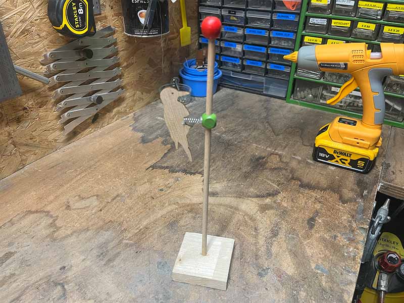 - Test of de specht mooi naar beneden gaat. Misschien moet je de veer wat uitrekken om het beste effect te krijgen.