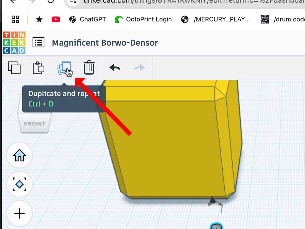 - Select the hole and click the "duplicate" button. This will create a copy of the hole directly over the first one. You may not see the compy untill you move it.