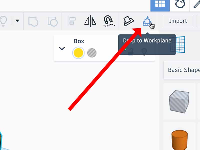 - When all the goles are done, select the cube and click the "drop to workplane" button to get the cube onto the workplane again.