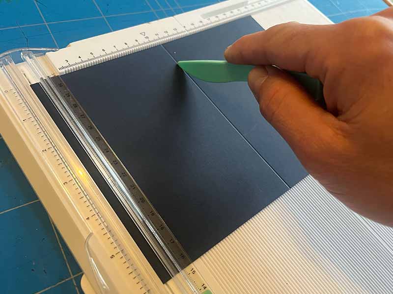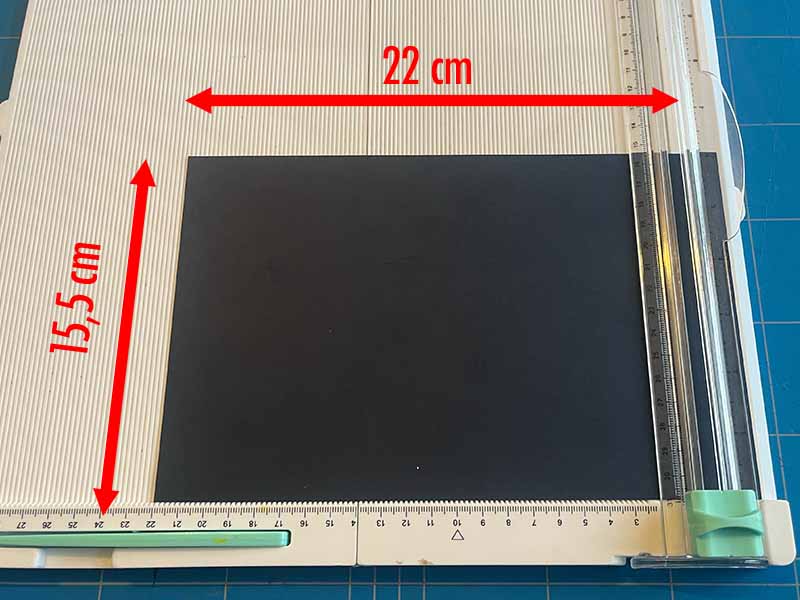 • Snijd een stuk dik papier uit van 22 bij 15,5 cm