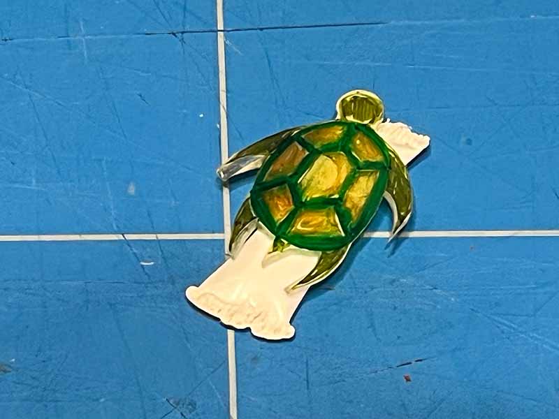 • Teken je duiker of zeedier op de glanzende kant van het plastic.