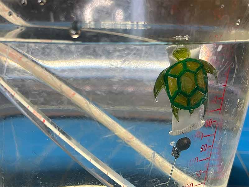 • Voeg gewichtjes toe aan het draad totdat je creatie net blijft drijven.
