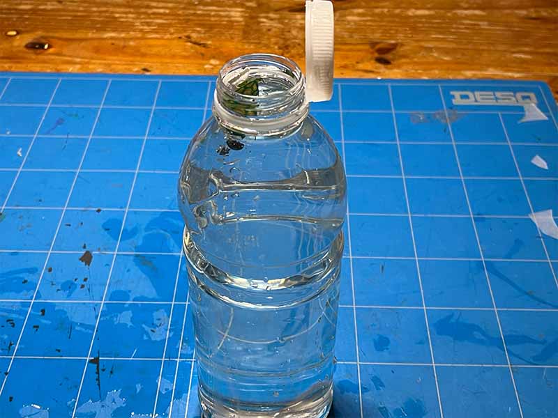 • Vul de fles helemaal met water en draai de dop erop.