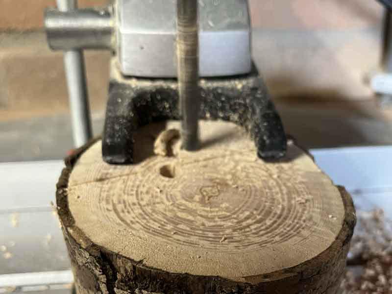 • Boor gaten in het hout met de verschillende boren.
