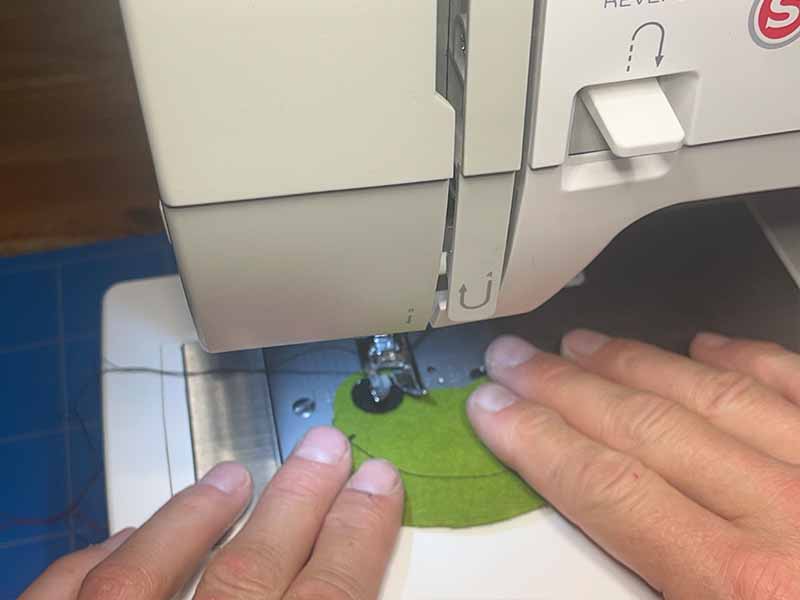 • Gebruik de naaimachine om het mondje te maken.