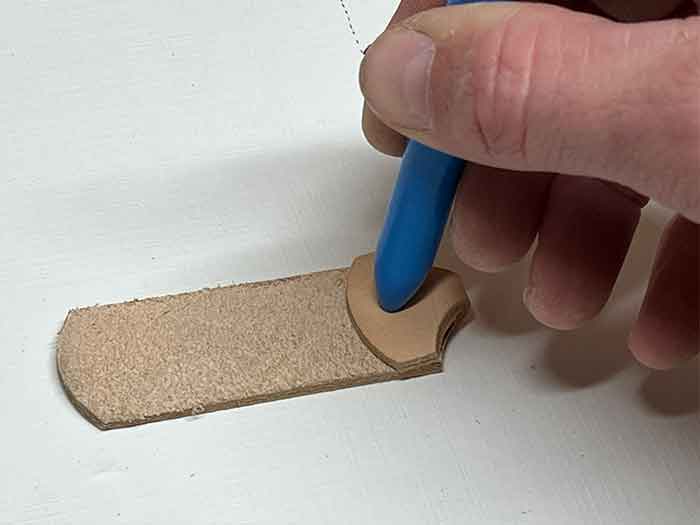 - Gebruik een hobbymes om een strip leer uit te snijden. Ongeveer 2,5cm breed en 11cm lang.