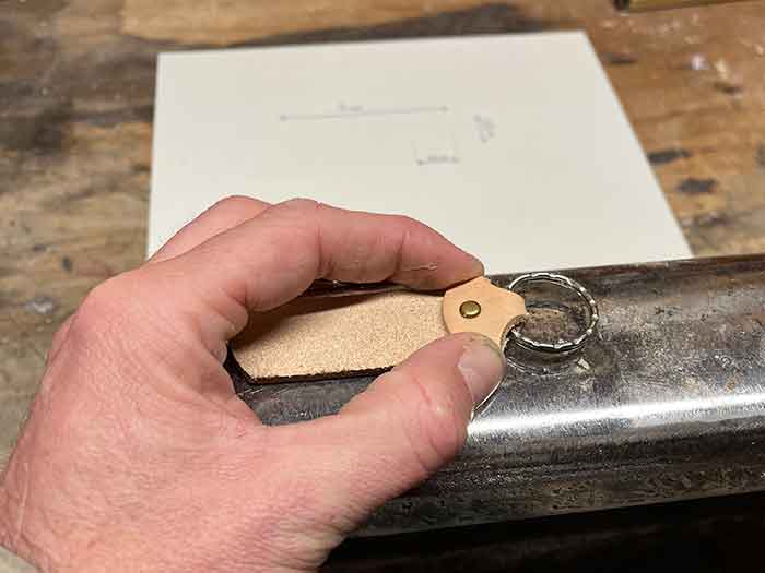 - Plaats de sleutel ring, vouw de gaatjes over elkaar heen en sla ze vast met een klinknagel.