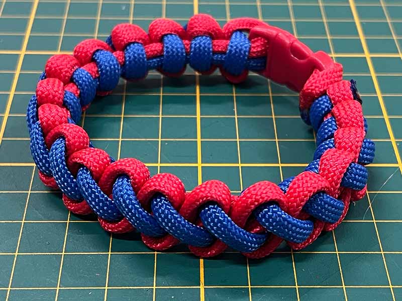 - paracord, 2 kleuren van elk ongeveer 130cm, 3mm dik