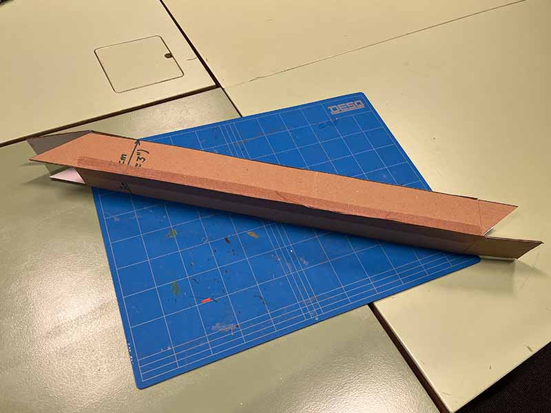 - Gebruik wat meer plakband om het karton met de spiegels aan het schuine stuk karton te bevestigen.