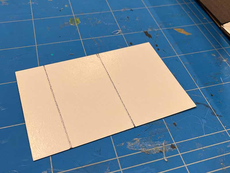 - Gebruik het hobbymes om de lijnen gedeeltelijk te snijden waar je wilt vouwen. Ga dus niet helemaal door het karton heen, maar alleen door het bovenste laagje. Op deze manier kun je het karton netjes vouwen.