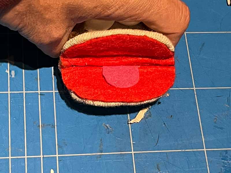 - Lijm het vilt aan de binnenkant van de mond om het karton te verbergen.