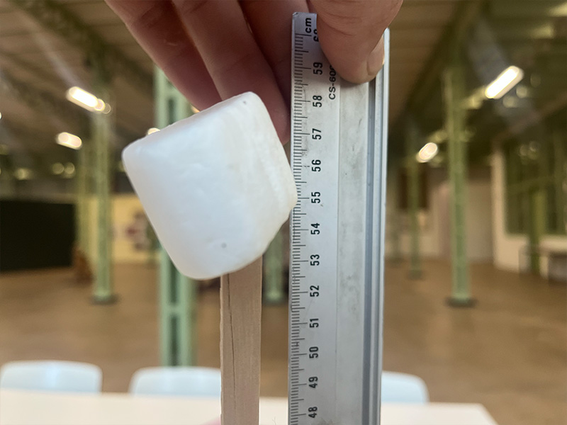 - Zodra je hebt gemeten hoe hoog je marshmallow is, schrijf het op en kijk of iemand anders je score kan verslaan.