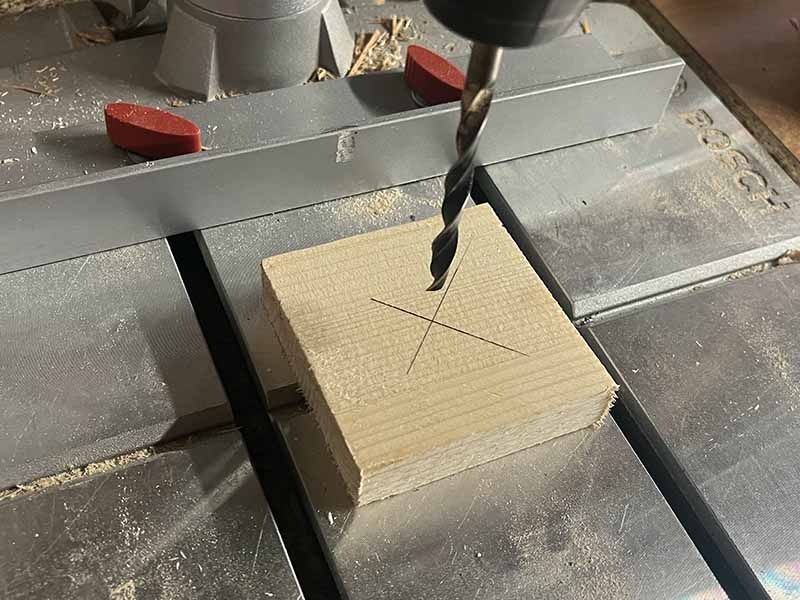 - Gebruik de 6mm boor om een gat door het midden te boren.